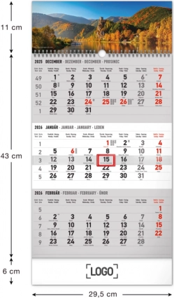 Calendrier mural pratique avec une disposition sur trois mois, une règle de repérage avec curseur et un aperçu annuel utile. Il propose un calendarium avec prénoms slovaques et fêtes internationales sur un élégant fond bleu foncé – idéal pour la planification à la maison comme au bureau.