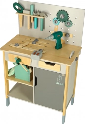 Valeur éducative : Utilisation appropriée pour un environnement domestique ou scolaire, où un large choix d'outils permet des scénarios de jeu infinis. Inclus, entre autres, une table, une scie, un tournevis, un marteau et bien plus encore, y compris une télécommande avec effets sonores.