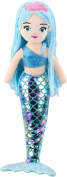 La sirène en peluche est habillée d'un top scintillant asymétrique bleu et ornée d'une couronne rose, ce qui lui donne une apparence féerique. Elle convient parfaitement à l'univers des histoires maritimes magiques que les enfants adorent.
