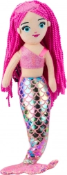 Poupée sirène en peluche avec queue holographique rose 48 cm
