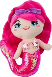 La sirène a de grands yeux brodés, un visage souriant, de longs cheveux roses avec un ruban et une queue à paillettes. La queue recouverte de paillettes réversibles qui passent du brillant au mat au toucher, stimule le toucher et la vue des enfants.