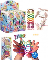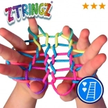 Profitez d’heures de divertissement avec la corde magique Ztringz. Cette ficelle multicolore permet de créer des formes et des tours incroyables – du parachute jusqu’au hamburger.