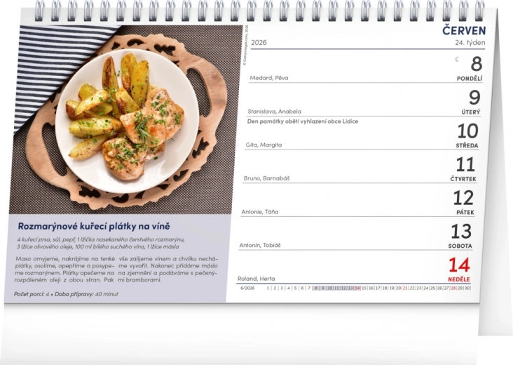 Trouvez l’inspiration pour votre cuisine maison avec ce calendrier de bureau rempli de 53 recettes traditionnelles qui rendent hommage à nos grands-mères. Le calendrier inclut les prénoms tchèques, les fêtes, les journées commémoratives et les phases lunaires.