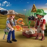 Révélez des secrets anciens avec le set de fouilles PLAYMOBIL palpitant ! Cachez des fossiles comme des ammonites, des trilobites et des œufs de dinosaures dans les rochers et redécouvrez-les à l’aide d’outils réalistes. À l’aide de pinceaux, d’un petit marteau et d’une loupe, analysez soigneusement vos trouvailles et rangez-les en toute sécurité dans la caisse en bois. Avec l’appareil photo inclus, les paléontologues peuvent documenter chaque découverte passionnante. La base détaillée avec buissons et branches invite à une exploration imaginative sans fin. Avec le design soigné de PLAYMOBIL, chaque fouille devient une aventure dans le passé !