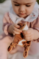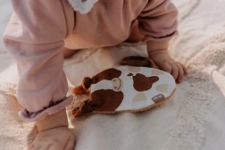 Fabriqué à partir de matériaux de qualité, le jouet Veau offre de nombreux éléments intéressants qui développent les sens de vos tout-petits. Le visage est en tissu imprimé 100% coton, certifié pour les enfants jusqu'à 3 ans. Le dos en éponge de bambou offre une surface douce et agréable.