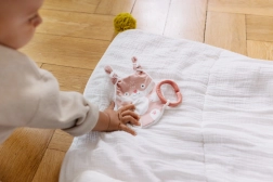 Pour un entretien facile, lavez le jouet sans l'anneau avant la première utilisation. Ne pas repasser ni sécher en machine. Le remplacement de l'anneau en plastique usé est possible directement sur notre e-shop.