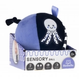 Cette balle éducative est pensée pour une découverte naturelle du monde par les plus petits. La peluche douce est agréable au toucher, le grelot intérieur invite au mouvement et les motifs contrastés noir et blanc avec des détails bleus favorisent l’attention visuelle. Les enfants peuvent faire rouler, attraper et transporter la balle, renforçant ainsi la coordination œil-main et la motricité générale.
