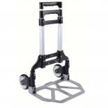 Ce chariot est équipé d’une plate-forme pliante de 39 × 21 cm, qui accueille facilement des cartons, caisses et autres objets jusqu’à 70 kg. La poignée télescopique avec réglage de hauteur en trois niveaux offre un guidage confortable pour des personnes de différentes tailles. La roue robuste de 120 mm de diamètre assure une stabilité et une adhérence optimales même sur des surfaces irrégulières.