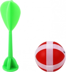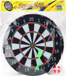 Le set inclut une cible sombre de 28 cm de diamètre, une flèche et une balle, toutes deux avec un embout à velcro. La cible a une numérotation lisible et des zones colorées qui non seulement facilitent l'apprentissage et améliorent les réflexes, mais permettent aussi de jouer à l'intérieur et à l'extérieur.