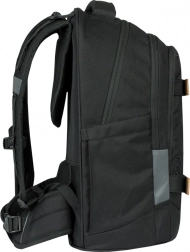 Le sac à dos dispose d’un organiseur à trois compartiments avec poches, y compris une poche spéciale pour ordinateur portable, et de pratiques fermetures éclair YKK à double curseur. Son design stylé est complété par une ceinture lombaire amovible et une poignée renforcée pour une charge jusqu’à 8 kg. Au niveau des bretelles, une maille fine assure un meilleur confort.