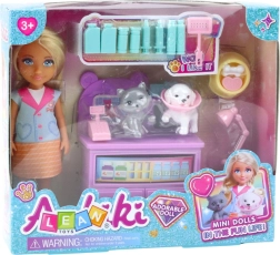 Découvrez l’univers des soins vétérinaires avec une mini poupée de seulement 13 cm. Habillée d’une tenue stylée comprenant des baskets et un chemisier portant l’inscription « Pet », les enfants l’adoreront dès le premier regard. Des accessoires réalistes incluent également un petit chien et un chat qui ont besoin d’aide, ainsi qu’une armoire médicale avec de nombreux accessoires.