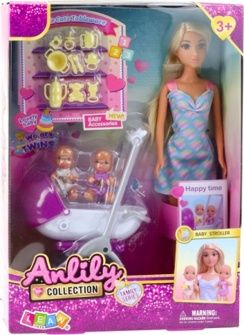 La poupée Anlily avec enfants est un bel ensemble polyvalent qui plonge les petits dans un univers chaleureux de scènes familiales et de jeux d’attention envers de tout-petits. La poupée Anlily, à la peau mordorée, porte une robe d’été colorée avec des chaussures orange, ce qui la rend idéale pour les aventures quotidiennes en maman ou en aidante. L’ensemble comprend deux bébés que l’on peut installer dans une poussette classique avec roues mobiles et canopy ouvrant pour un jeu réaliste.