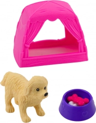 Le set inclut un petit chien – fidèle compagnon de la poupée – qui a besoin de soins, de nourriture et d’un coin pour se reposer. Une tente rose lui est spécialement dédiée, servant de niche – idéale pour se reposer, jouer ou dormir. Le coffret comprend également une gamelle avec un os et une friandise pour des mises en scène réalistes.