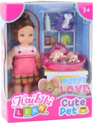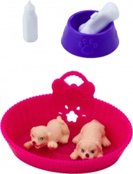 Les enfants apprécieront les deux petits chiots qu’ils peuvent nourrir, choyer et coucher dans un petit panier rose orné d’une patte. Grâce au biberon et à la gamelle violette avec un os, ils peuvent inventer des scènes de soins réalistes, développant ainsi empathie, créativité et motricité fine.