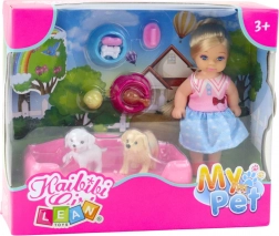 Occupez vos enfants avec cet adorable coffret qui apporte au jeu des expériences de soins aux animaux de compagnie. La poupée de 12 cm de hauteur porte une élégante jupe bicolore, complétée par des petits souliers rouges et des cheveux blonds coiffés en chignon lisse.