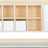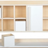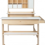 Il comprend trois tiroirs, un compartiment latéral et une étagère arrière avec portes coulissantes, offrant amplement de place pour tout ranger.