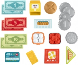 - Caisse avec scanner, 20 pièces de jeu (billets, pièces, carte, aliments)