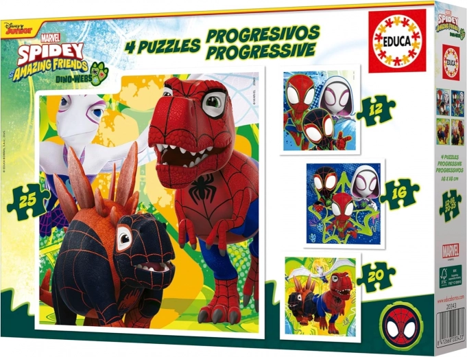 Educa Puzzle Spidey et ses amis extraordinaires : Dino-web 4-en-1 offre un divertissement fantastique pour petits et grands, avec différents niveaux de difficulté et des tailles de pièces variées.