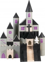 Le jeu de construction en bois Château hanté apporte une touche de magie et de mystère à l’univers des enfants. Chacune des 97 pièces est imprimée et de formes et tailles variées, offrant des possibilités infinies pour construire le château.