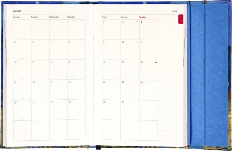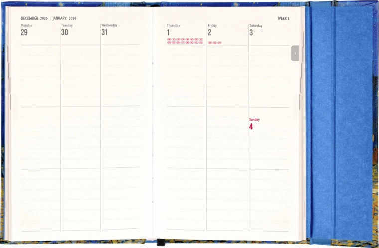 Ce élégant agenda hebdomadaire avec un motif de Vincent van Gogh est parfait pour une utilisation quotidienne à la maison comme au bureau. L’agenda offre :