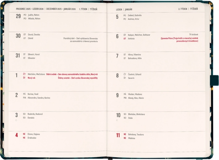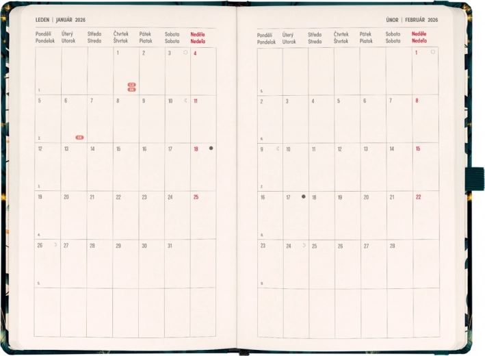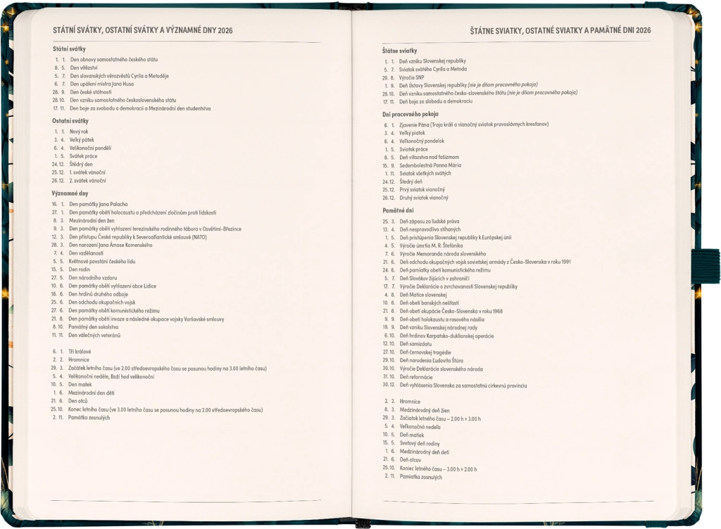 Profitez de l’alliance idéale d’un agenda et d’un carnet avec le PLANBOOK. La première moitié contient un calendrier bimensuel horizontal avec les jours fériés tchèques et slovaques, qui vous aide à planifier chaque jour avec soin. La seconde moitié, composée de pages lignées, est parfaite pour consigner toutes vos notes, idées ou projets.