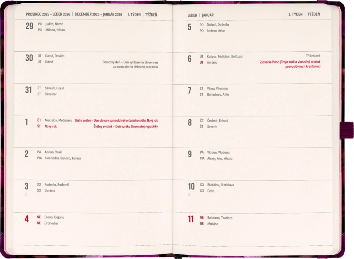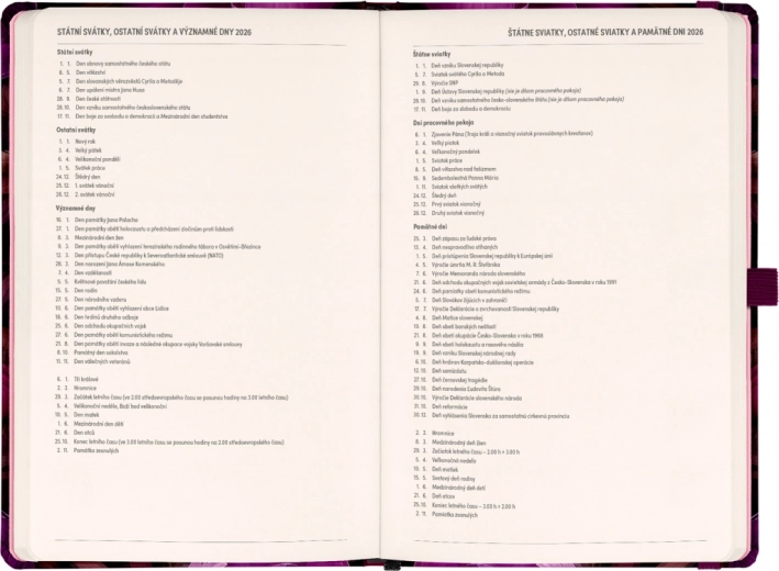 - Calendrier bimensuel horizontal avec jours fériés tchèques et slovaques pour une planification aisée.