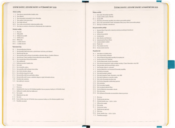 PLANBOOK Herbier 2026 est la solution idéale pour tous ceux qui souhaitent réunir planification et notes au même endroit. La première moitié contient un calendrier horizontal bihebdomadaire avec les jours fériés tchèques et slovaques, ce qui facilite la planification. La seconde moitié offre suffisamment de pages lignéees pour les notes, parfait pour la réflexion créative et la gestion de projets.