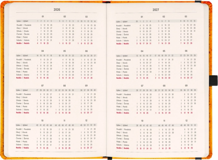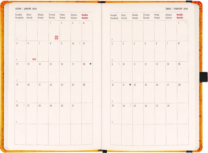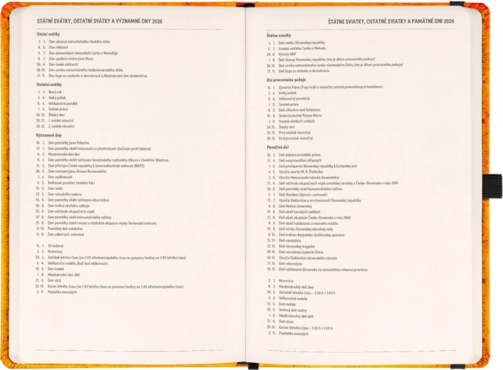 - Calendrier bimensuel horizontal avec jours fériés tchèques et slovaques pour une planification aisée.