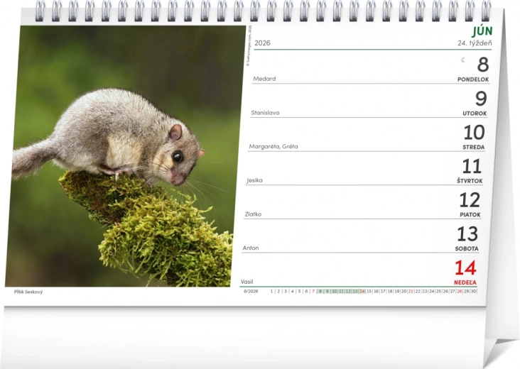 Calendrier de bureau apprécié pour chaque chasseur, apportant des informations essentielles sur la nature en Slovaquie, complétées par de photographies de faune sauvage.