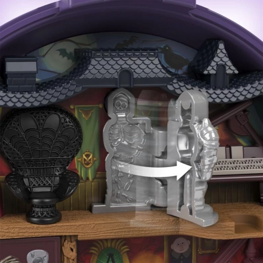 Profitez de la magie du monde de la Famille Addams au format de poche. Le compact au design violet foncé renferme un intérieur à plusieurs niveaux avec cheminée, escalier et portail « ADDAMS » qui invite à l’exploration. Le set est idéal pour les collectionneurs comme pour les enfants – il offre des éléments interactifs, des surprises et d’innombrables possibilités de jeu imaginatif.