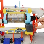 Le set de jeu Matchbox Turbo Cyclone transforme la chambre des enfants en station de lavage et service auto animée. Les petites voitures gravissent la rampe en spirale jusqu’à l’étage supérieur, où le « voiturier » les dirige vers le tunnel de lavage rotatif. Tirez le levier et le tambour transparent se met à tourner – il s’arrête aléatoirement sur « sale », « savonné » ou « propre ». Quand le véhicule est « propre », il descend automatiquement la rampe et libère la place pour le suivant.