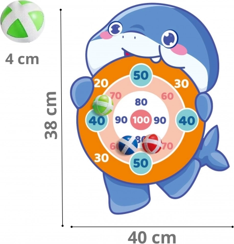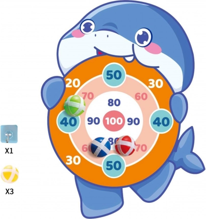 Plongez dans un monde de divertissement palpitant avec la cible en forme de mignon requin de la marque Woopie ! Cette cible colorée et joyeuse, idéale à suspendre au mur, garantit des heures de jeu actif tout en développant la précision et la coordination de votre enfant. Le paquet comprend des balles souples qui, grâce au velcro, s’attachent facilement à la cible, ce qui facilite le comptage des points.