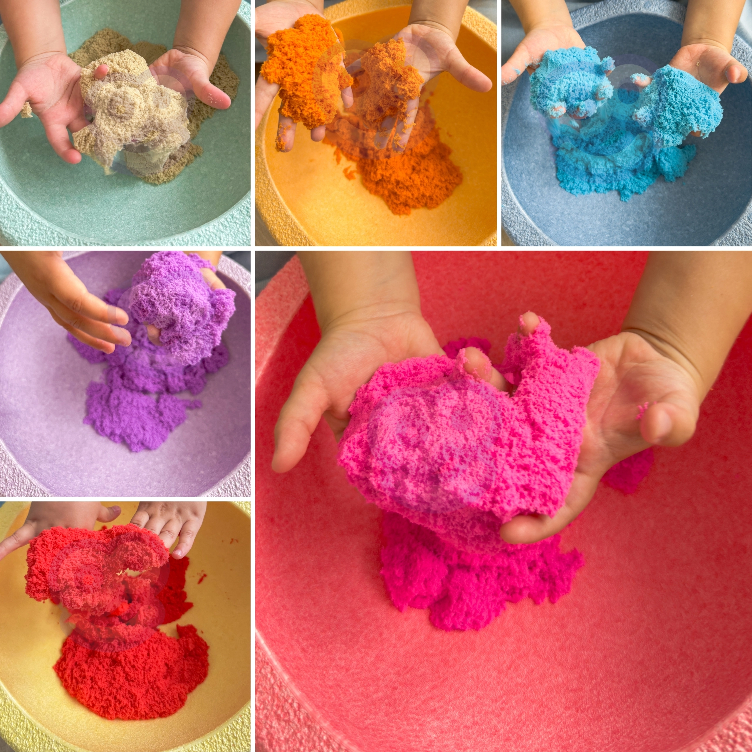 - 6 couleurs, 1,2 kg de sable cinétique pour un jeu varié