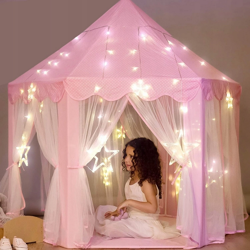 Cette tente rose magique en forme de château est l’endroit idéal pour que votre enfant s’immerge dans un monde d’aventures féeriques et joue avec une élégance royale.