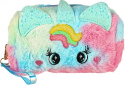 Design inspiré de la licorne avec motif arc‑en‑ciel et petites oreilles, idéal pour ranger les indispensables de beauté.