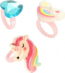 - Trois bagues : cœur, nuages arc-en-ciel, licorne