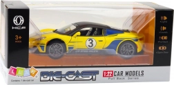Cette superbe voiture de sport est équipée d’effets lumineux et sonores, activés par une légère pression sur le capot, offrant une expérience réaliste de course automobile. Grâce au mécanisme à friction, la voiture se met facilement en mouvement, il suffit de la pousser vers l’avant.