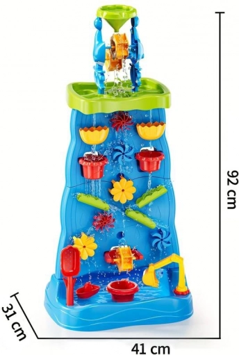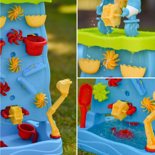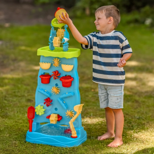 Table à eau et mur d’eau double face XXL WOOPIE 2-en-1. Cascades modulaires, accessoires riches, montage facile. Amusement et développement des compétences dès 3 ans.