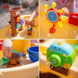 Le générateur intégré de bulles de savon et le canon à eau transforment le jeu en spectacle pirate. Les enfants peuvent asperger, souffler et observer les bulles ainsi que l’eau qui s’écoule.