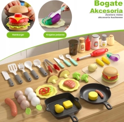 Poêles, ustensiles, assiettes, couverts et une variété d’aliments à griller stimulent l’imagination et développent la motricité fine.