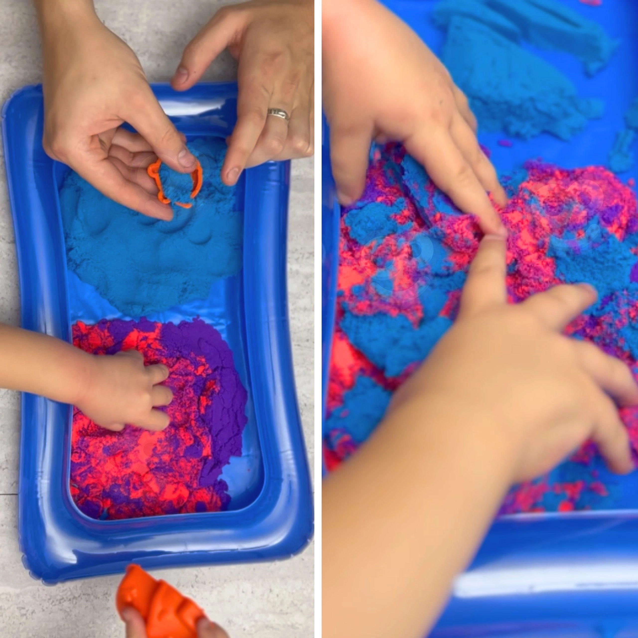 Le sable cinétique est doux au toucher, garde parfaitement sa forme, ne colle pas aux mains et ne sèche pas – idéal pour des heures de jeu.