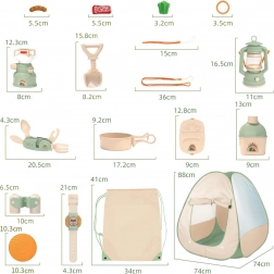 L'ensemble de camping de la marque Woopie offre divers accessoires réalistes qui procurent aux enfants une expérience authentique de camping. Cet ensemble est exclusivement destiné à des fins de jeu et ne convient pas pour un vrai camping.
