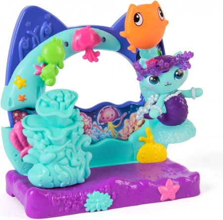 Ce set de jeu avec balcon sous-marin transforme chaque séance en une aventure miaou-magique. Le socle stable avec coraux, méduses et accessoires est idéal pour des histoires imaginatives, tandis que l’adorable sirène chat-poisson Poiscaille deviendra le nouveau personnage préféré des enfants.