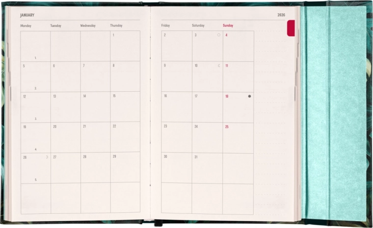 Gardez vos plans et tâches bien organisés grâce à cet agenda Monstera 2026. Cet agenda stylé et pratique inclut :
