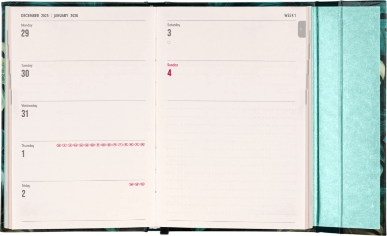 - Présentation horizontale de la semaine sur deux pages.