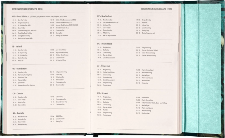 Agenda hebdomadaire avec fermeture magnétique et textes en anglais est un excellent choix pour ceux qui souhaitent organiser efficacement leurs plans. Offre une vue de la semaine sur deux pages et des jours fériés internationaux pour un confort de planification quotidien.