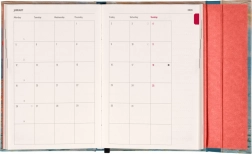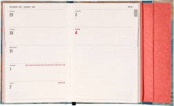Pour tous les amateurs d'organisation, cet agenda est un excellent choix. Avec une disposition horizontale sur les pages au format semaine sur deux pages, il offre suffisamment d'espace pour les annotations. De plus, il inclut des aperçus mensuels utiles pour une planification efficace des vacances et congés.