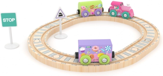 Ce set de voie ferrée en bois est une première petite ligne idéale pour les tout-petits. Grâce à ses couleurs attrayantes et à son design pensé pour les filles, il captive rapidement les enfants et développe leur imagination. Les matériaux sont respectueux de la nature et sans produits chimiques, pour un jeu sûr au quotidien.