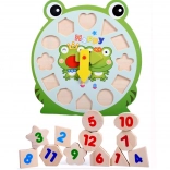 Cette horloge en bois en forme de grenouille offre une combinaison d’apprentissage et d’amusement, idéale pour les enfants dès 3 ans. Les enfants y apprennent des compétences essentielles, comme la lecture de l’heure sur une horloge analogique, tout en développant leur motricité fine et la coordination œil-main.