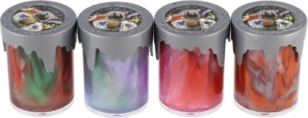 Le slime métallique Mars Mud ravira enfants et adultes. Il a une consistance agréable, à écoulement lent, qui se modèle, s’étire et se presse à merveille. Le gobelet transparent met en valeur les tourbillons de couleurs originaux et la brillance métallique.